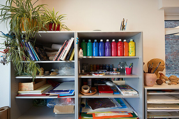 Die Kunsttherapie bietet einen wertungsfreien Ort, an dem sich die Kinder und Jugendlichen auch ohne künstlerische Vorkenntnisse individuell ausdrücken können. In der Einzeltherapie werden unter Anleitung unserer Diplom-Kunsttherapeutin zunächst verschiedene Materialien wie Aquarell- und Gouachefarben, Pastell- und Aquarellkreiden, Zeichenkohle oder Ton frei ausprobiert. Eine gemeinsame Reflektion hilft dabei, eine passende Technik und ein stimmiges, eigenes Thema zu finden. Die Kunsttherapeutin begleitet nun die Patientinnen und Patienten im Arbeitsprozess behutsam auf ihrem künstlerischen Weg. Sie gibt Anregungen, spiegelt die Arbeitsweise, bietet Übungen und neue Sichtweisen an.